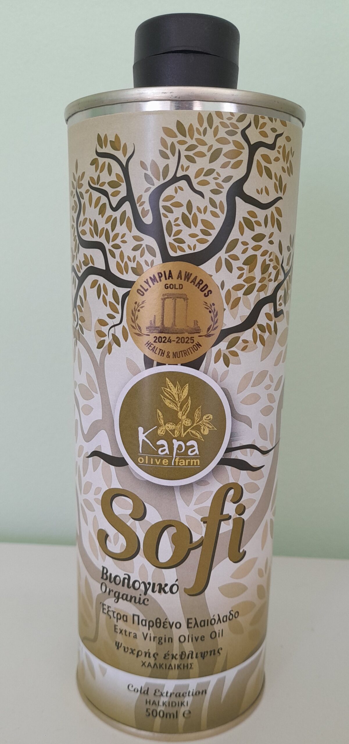 Το βιολογικο εξτρα παρθενο ελαιολαδο εσοδειας 2024 Sofi της ‘’Kapa Olive Farm’’ παραγεται από 100% πρασινες ελιες Χαλκιδικης και ανηκει στην ανωτερη κατηγορια λαδιων που προστατευουν από την οξειδωση των λιπιδιων του αιματος συμφωνα με τον κανονισμο 432/2012 της Ε.Ε. Οι ουσιες που περιεχει Ελαιοκανθαλη 384 mg/Kg. και Ελαιασινη 182 mg/Kg. είναι ανωτερες του μεσου ορου των δειγματων διεθνους δειγματοληψιας ελαιολαδων και διαθετουν αντιφλεγμονωδες, αντιοξειδωτικες, καρδιοπροστατευτικες και νευροπροστατευτικες ιδιοτητες.Συμφωνα με την χημικη αναλυση που εγινε στο Εθνικο και Καποδιστριακο Πανεπιστημιο Αθηνων το συνολο των Πολυφαινολικων Συστατικων είναι 1001mg/Kg.